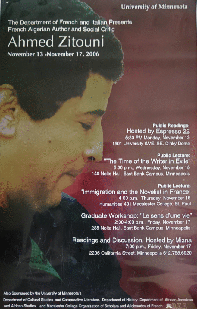 Culturelle(DRAC) Provence-Alpes-Côte d’Azur, sur le thème de l’insertion culturelle des jeunes des cités défavorisées, 1995.- Résidence d’écrivain à Marseille (Bouches-du-Rhône) en collaboration avec le Centre National des Lettres (CNL) et le Centre d’Information et de Documentation sur l’Immigration Maghrébine (CIDIM). Enquête de terrain portant sur le thème de la mémoire immigrée, 1997-1998. Ce travail a abouti à la rédaction d’un roman intitulé « Y a-t-il une vie avant la mort ?» (Ed. de la Différence, Paris, 2007)